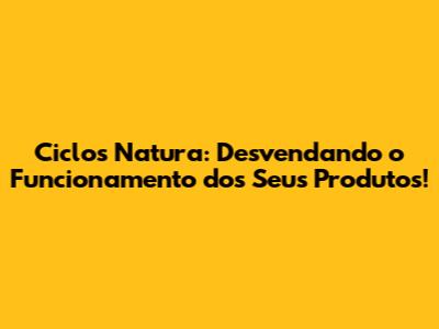 Ciclos Natura: Entenda O Funcionamento
