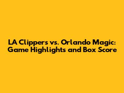 Clippers Vs Magic: Game Highlights & Box Score