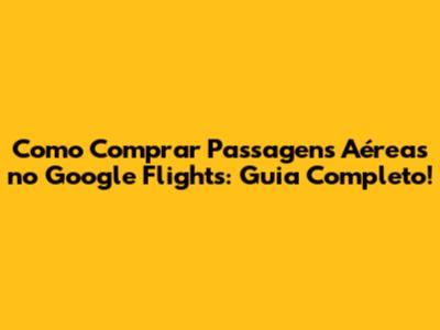 Como Comprar Passagens Aéreas No Google Flights: Guia Completo!