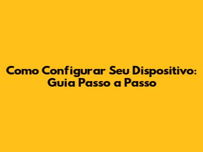 Como Configurar Seu Dispositivo: Guia Passo A Passo