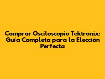 Comprar Osciloscopio Tektronix: Guía Completa