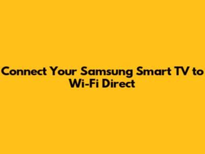 Connect Your Samsung Smart TV To Wi-Fi Direct