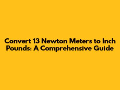 Hey everyone, today we're diving into a practical conversion: changing 13 Newton Meters (Nm) into inch-pounds (in-lbs). This is super useful for all sorts of projects, whether you're a DIY enthusiast or a seasoned mechanic. Understanding how to switch between these units of torque is essential for precision and accuracy. So, let's get started and break down this conversion in a way that's easy to understand! We'll cover everything from the basic formula to real-world examples, ensuring you have a solid grasp of the process.