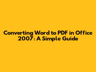 Converting Word To PDF In Office 2007: A Simple Guide