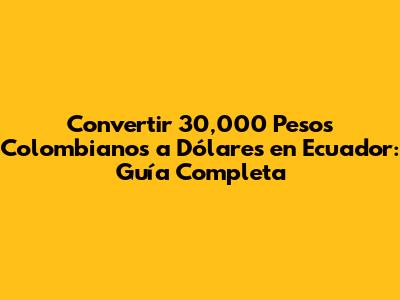 Convertir 30,000 Pesos Colombianos A Dólares En Ecuador: Guía Completa