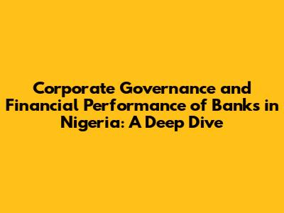 Corporate Governance & Bank Performance In Nigeria
