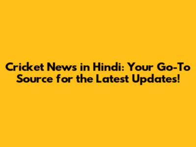 Cricket News in Hindi: Your Go-To Source for the Latest Updates!