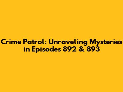 Crime Patrol: Unraveling Mysteries In Episodes 892 & 893