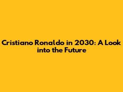 Cristiano Ronaldo In 2030: A Look Into The Future