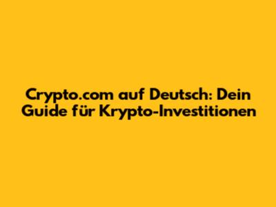 Crypto.com Auf Deutsch: Dein Guide