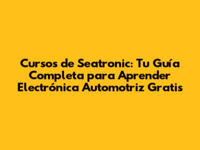 ¿Listo para empezar a aprender electrónica automotriz? ¡Genial! Aquí tienes algunas plataformas y recursos donde puedes encontrar cursos de Seatronic gratuitos:
