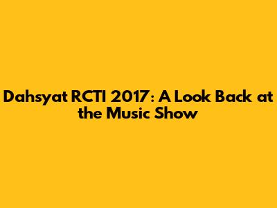 Hey guys! Let's take a trip down memory lane and revisit Dahsyat RCTI in 2017. This iconic music show was a staple for Indonesian television viewers, showcasing the latest hits and featuring some of the biggest names in the Indonesian music industry. In this article, we'll dive deep into what made Dahsyat RCTI such a memorable part of the entertainment landscape back then. From its energetic hosts to the electrifying performances, we'll cover it all. So, get ready to reminisce about the good old days of Indonesian pop music!