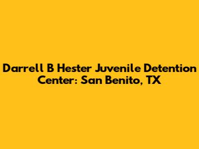 Hey there, folks! Let's dive into the ziDarrell B Hester Juvenile Detention Center located in San Benito, Texas. If you're looking for information on this facility, you've come to the right place. This article will provide you with a comprehensive overview, including its purpose, operations, and the role it plays within the juvenile justice system. We'll explore its history, the services offered, and what you need to know if you or someone you know is connected to the center. So, buckle up, and let's get started!
