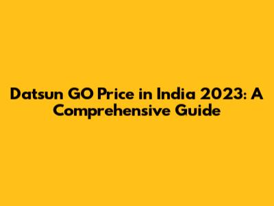 Datsun GO Price In India 2023: A Comprehensive Guide