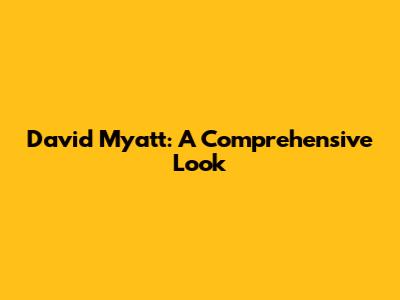 David Myatt: A Comprehensive Look