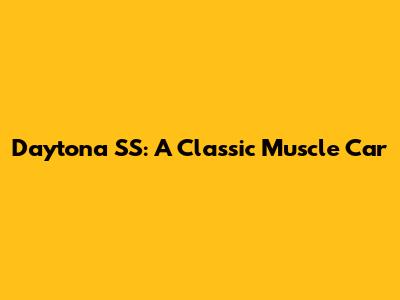 Daytona SS: History, Specs, And Value