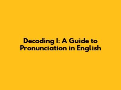 Decoding 'I': A Guide To Pronunciation In English
