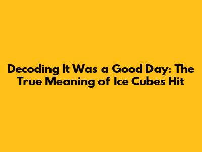 Hey music lovers! Ever wondered about the deeper meaning of Ice Cube's iconic track, "It Was a Good Day"? This isn't just a catchy tune; it's a slice of life, a vivid snapshot of a perfect day in South Central Los Angeles. We're diving deep to uncover the layers of storytelling, the cultural references, and the subtle nuances that make this song a timeless classic. Get ready to explore the hidden gems and appreciate the genius of Ice Cube's lyrical prowess. Let's get started, shall we?