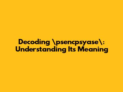 Decoding psencpsyase: Understanding Its Meaning