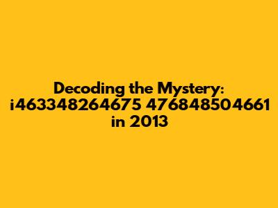 Decoding The Mystery: I463348264675 476848504661 In 2013