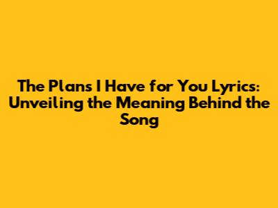 Decoding 'The Plans I Have For You' Lyrics: Meaning & Analysis