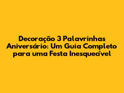 Olá, pessoal! Se você está planejando uma festa de aniversário com o tema 3 Palavrinhas, pode respirar fundo, porque você veio ao lugar certo! Preparei um guia completíssimo para você arrasar na decoração, transformando o seu evento em um momento mágico e inesquecível. Vamos mergulhar no universo colorido e divertido das 3 Palavrinhas e criar uma celebração que vai encantar crianças e adultos. A decoração 3 Palavrinhas aniversário é perfeita para celebrar a fé, a alegria e o amor de forma lúdica e memorável. Com um pouco de criatividade e as dicas certas, você vai transformar qualquer espaço em um cenário encantador, repleto de personagens adoráveis e mensagens inspiradoras. Então, prepare-se para soltar a imaginação e embarcar nessa jornada festiva! A seguir, você encontrará tudo o que precisa saber para criar uma decoração 3 Palavrinhas que vai deixar todos de queixo caído.