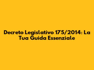 Decreto Legislativo 175/2014: Guida Completa
