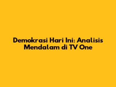 Demokrasi Hari Ini: Analisis Mendalam Di TV One