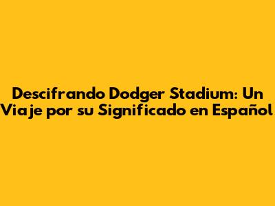 Descifrando Dodger Stadium: Un Viaje Por Su Significado En Español