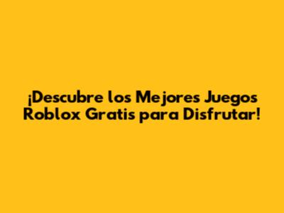 ¡Descubre Juegos Roblox Gratis Y Divertidos!