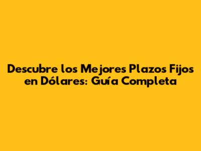Descubre Los Mejores Plazos Fijos En Dólares: Guía Completa