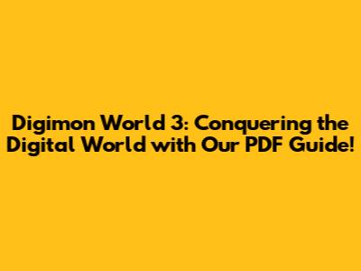 Digimon World 3: Your Ultimate PDF Walkthrough & Guide