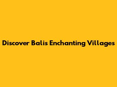 Discover Bali's Enchanting Villages