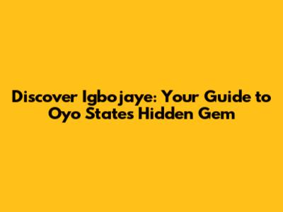 Discover Igbojaye: Your Guide To Oyo State's Hidden Gem