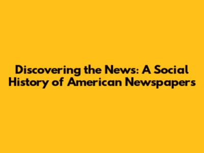 Discovering The News: A Social History Of American Newspapers