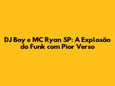 DJ Boy E MC Ryan SP: A Explosão Do Funk Com 'Pior Verso'