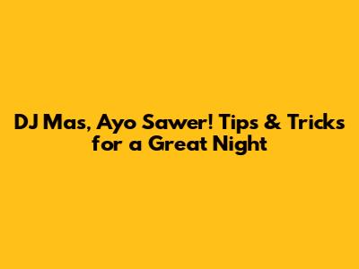 DJ Mas, Ayo Sawer! Tips & Tricks For A Great Night