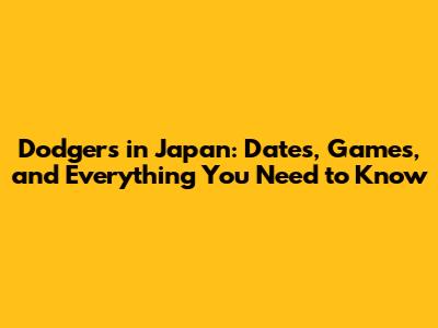 Dodgers In Japan: Dates, Games, And Everything You Need To Know
