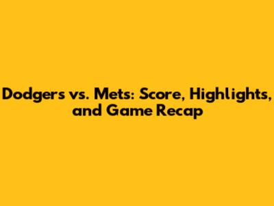 Dodgers Vs. Mets: Score, Highlights, And Game Recap