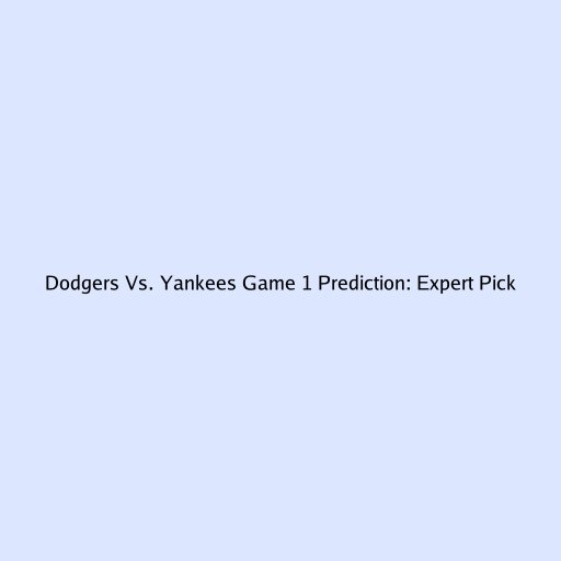 Dodgers Vs. Yankees Game 1 Prediction: Expert Pick