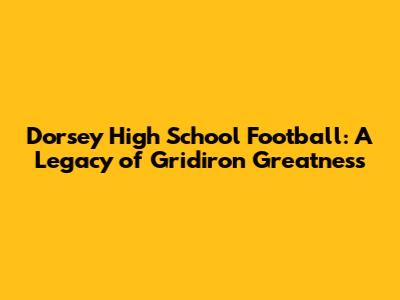 Dorsey High School Football: A Legacy Of Gridiron Greatness
