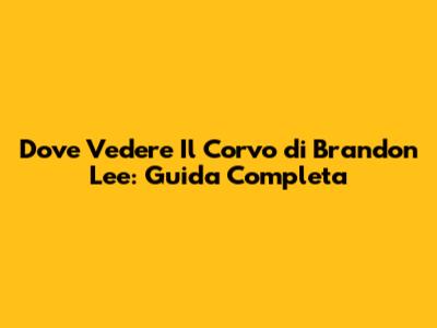 Dove Vedere 'Il Corvo' Di Brandon Lee: Guida Completa