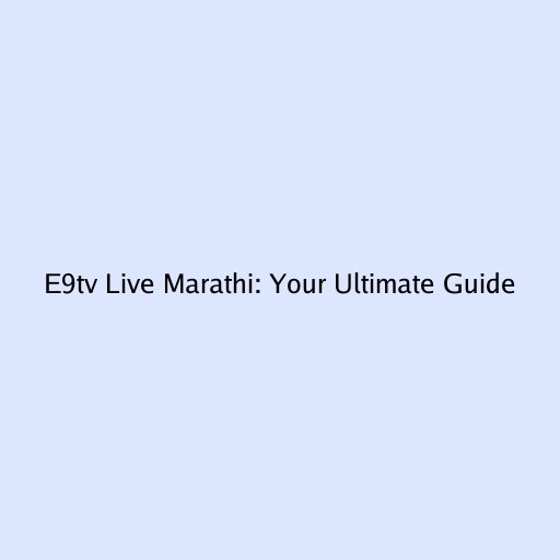 E9tv Live Marathi: Your Ultimate Guide