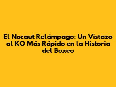 El Nocaut Relámpago: El KO Más Rápido En La Historia Del Boxeo
