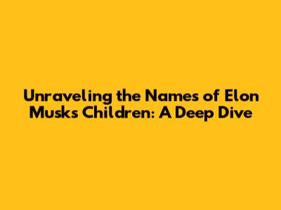 Hey everyone! Let's talk about one of the most talked-about tech moguls out there, Elon Musk. We all know him for his groundbreaking work with SpaceX, Tesla, and Neuralink, but what about his personal life? Specifically, his kids! Many of you are curious, asking, "wie heien die kinder von elon musk mit vornamen" (what are the first names of Elon Musk's children?). Well, buckle up, because we're going to dive deep into the fascinating world of Elon Musk's offspring and their unique monikers. It's not just about listing names; it's about understanding the thought process, the inspirations, and sometimes, the sheer unconventionality behind them. This isn't your average celebrity baby name list; this is a peek into the mind of a visionary, and how that might translate into naming the next generation. We'll explore each child, their mother, and the stories (or lack thereof) behind their names. So, if you've ever wondered about the names gracing Elon Musk's family tree, you've come to the right place. Get ready to be surprised, amused, and perhaps even a little inspired by the diverse and sometimes truly out-there names of Elon Musk's children.