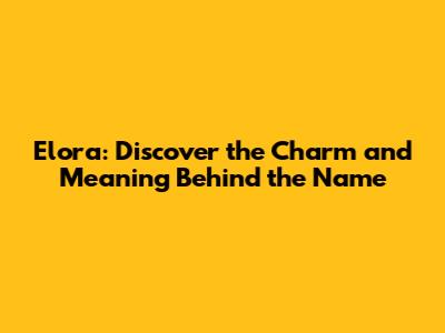 Elora: Discover The Charm And Meaning Behind The Name