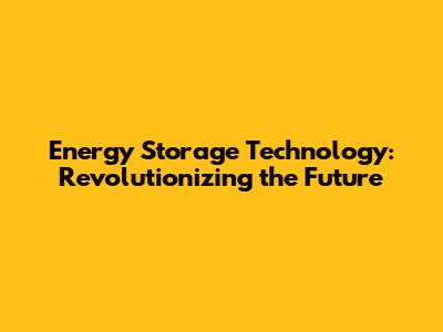 Energy Storage Technology: Revolutionizing The Future