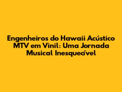 Ah, os Engenheiros do Hawaii! Para muitos de nós, essa banda é mais do que música; é a trilha sonora de uma época, de memórias, de sentimentos. E quando falamos do Acústico MTV deles, a coisa fica ainda mais especial. Esse álbum, lançado originalmente em 2004, não é só um disco; é um portal para um universo de emoções, e a versão em vinil é como um tesouro a ser descoberto. Vamos mergulhar nesse universo e entender por que esse vinil é tão cobiçado e amado pelos fãs. Mas antes, vamos entender a importância do Engenheiros do Hawaii Acústico MTV em vinil.