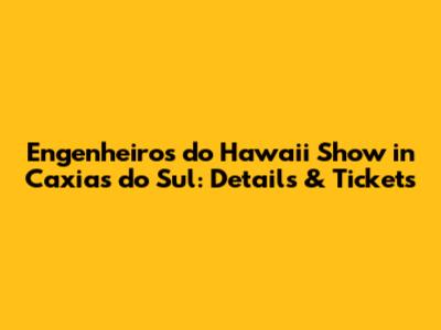 Engenheiros Do Hawaii Show In Caxias Do Sul: Details & Tickets