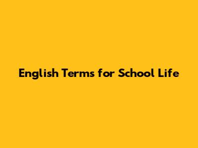 English Terms For School Life